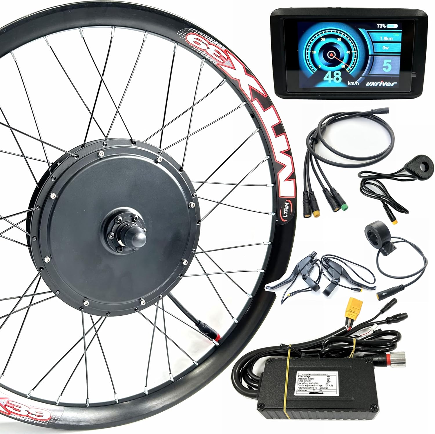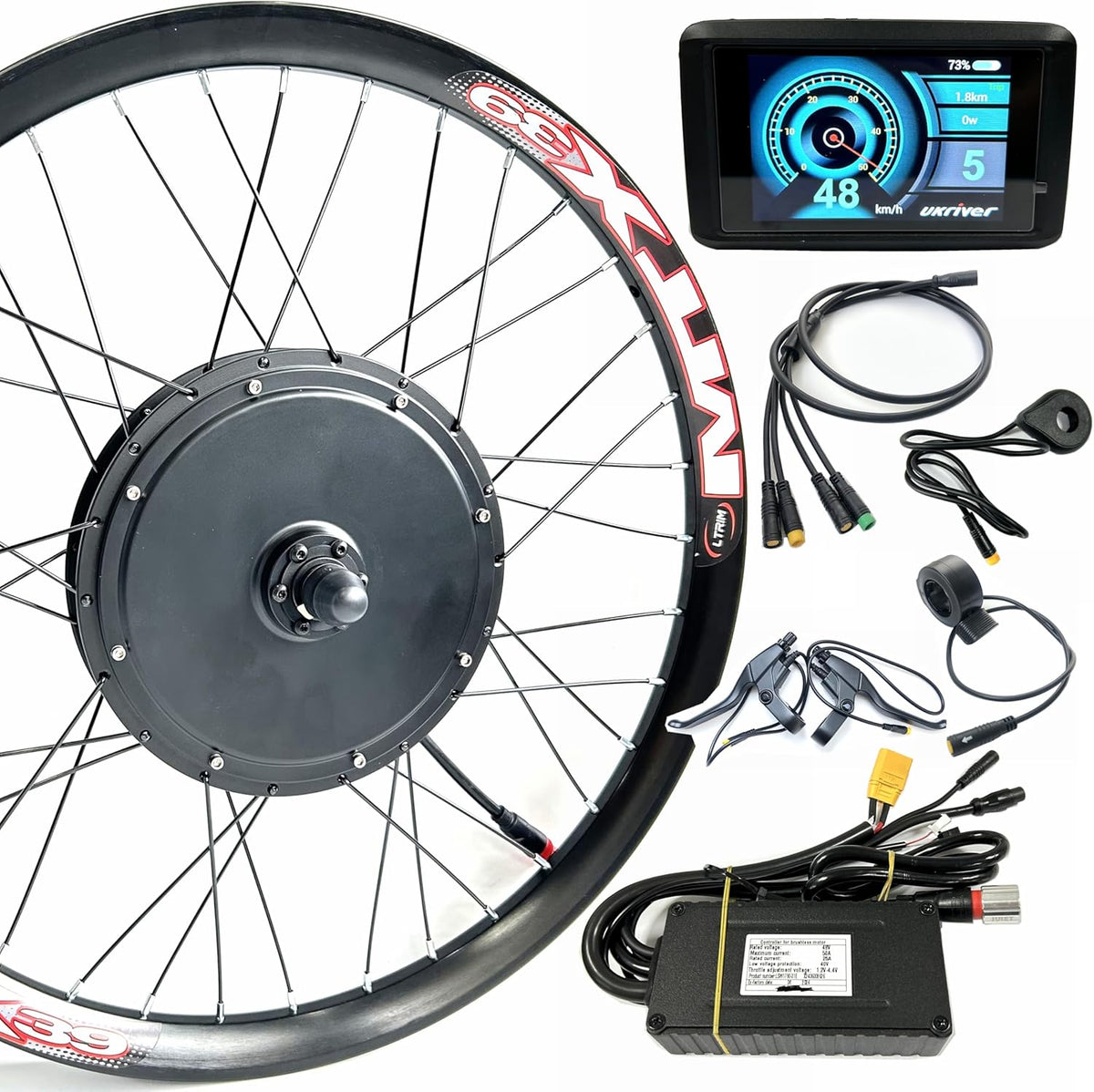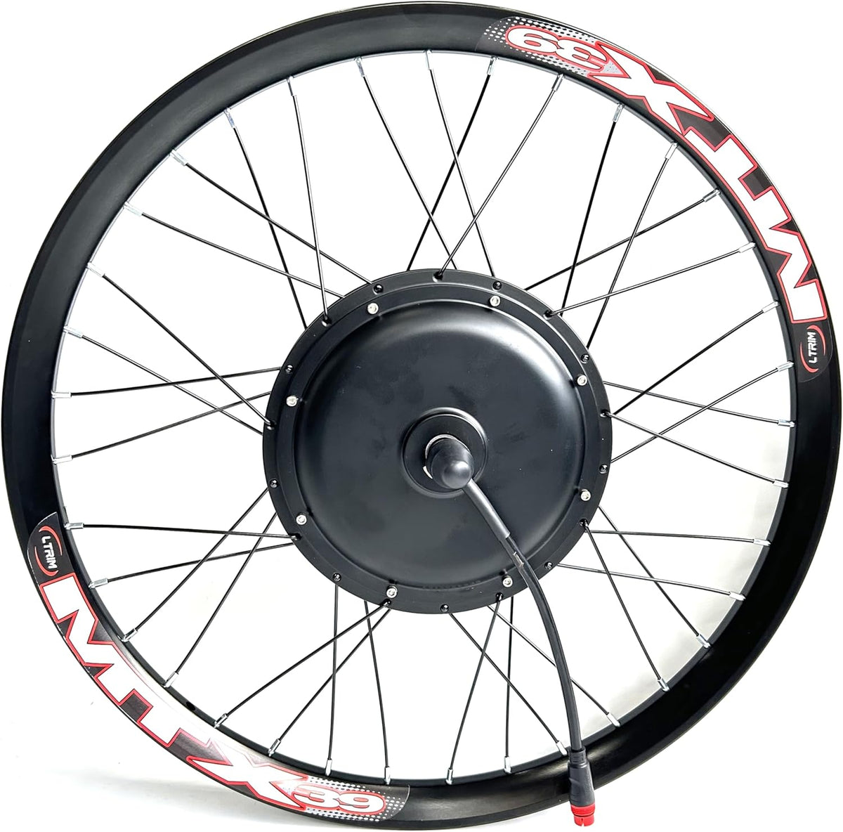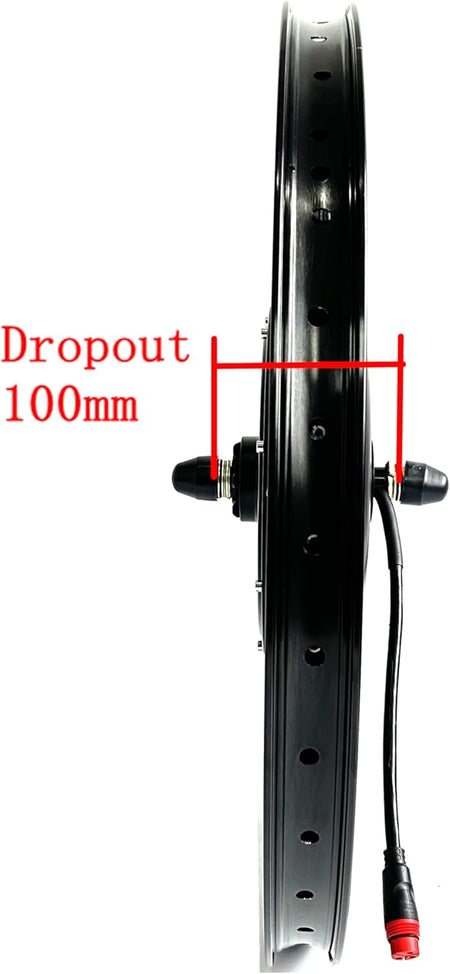 - 48V2000W Front Drive Motor 100mm Dropout,compatible with disc brake,laced with 26inch rim double wall,the wheel can mount with 1.75/2.95inch tyre. Loaded max speed:55kmh(34kph)