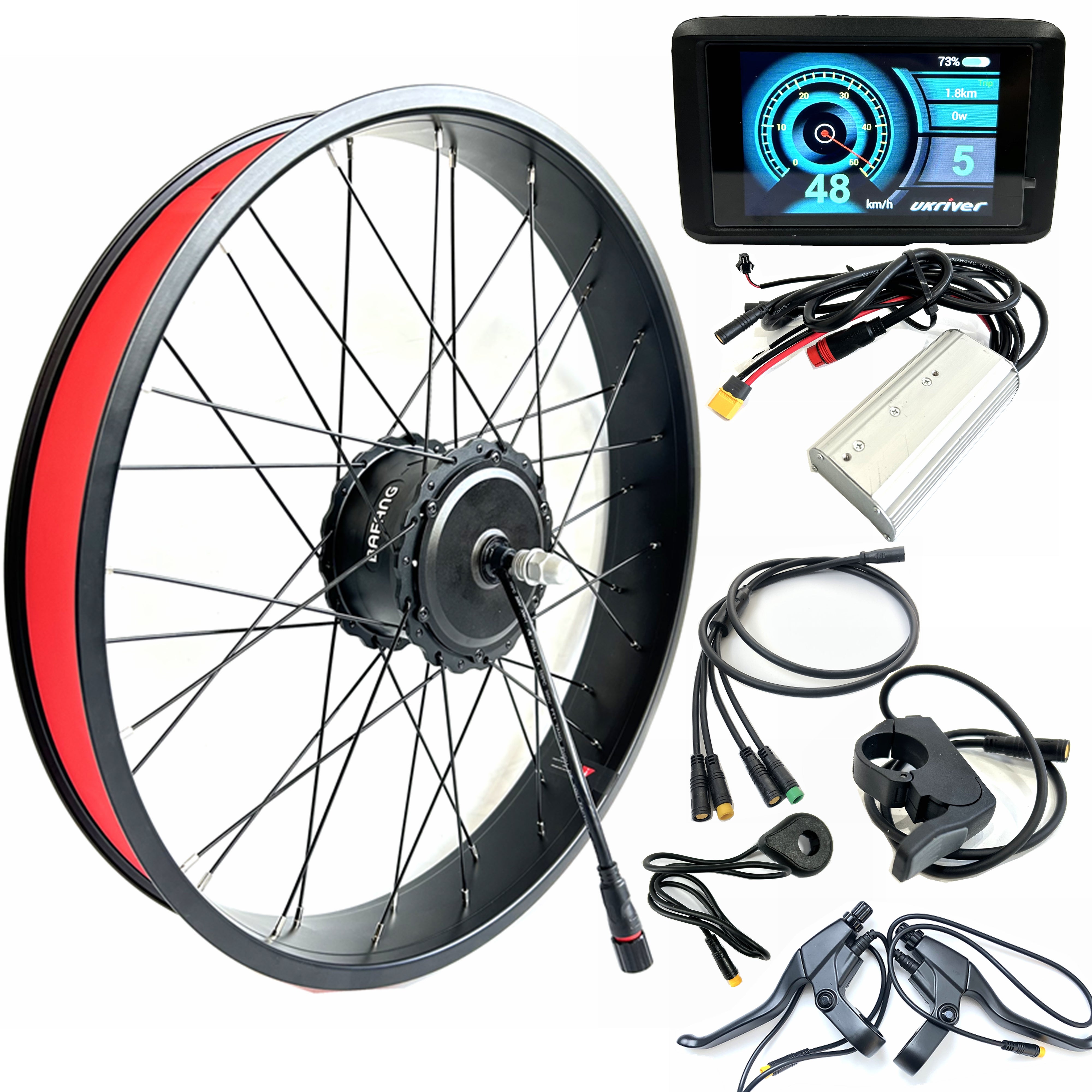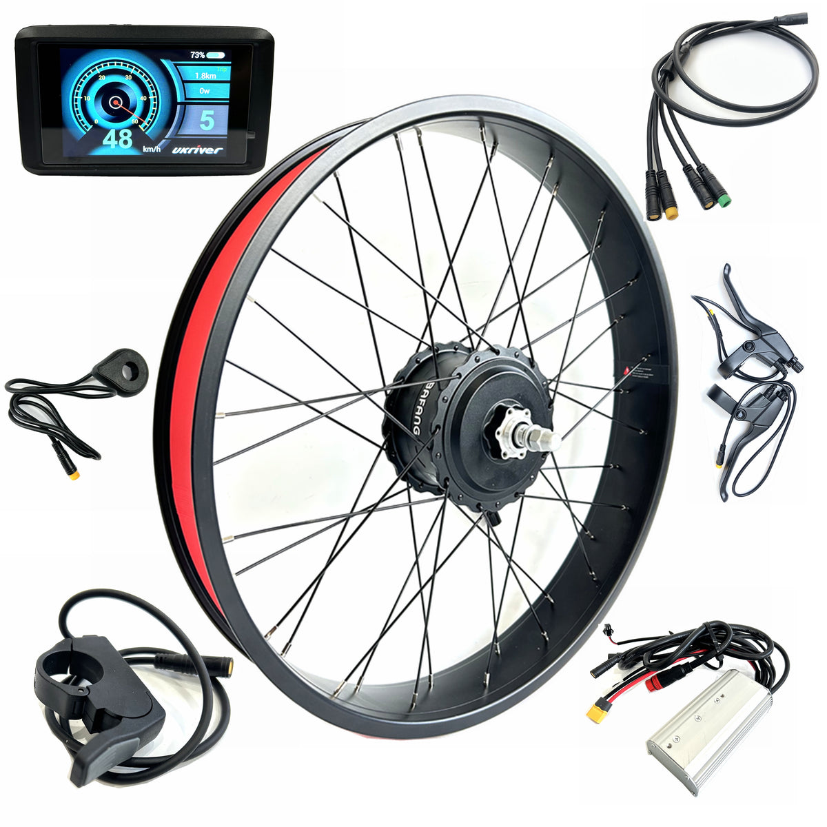 BAFANG 26x4.0 inch Electric Bicycle Hub Motor Front Drive 48V1000W Fat Bike Motor Kit 135mm Dropout Double Wall Rim TFT Color Display