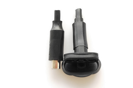 This is the battery connector with single main power wire,this connector is used for charging battery.The battery connector with gold surface on the pins makes sure the efficient current transportation.This connector plug-in&out can be 10000 times which is compatible with battery long using life.The charging connector connector is an ideal choice for 10A battery charging.