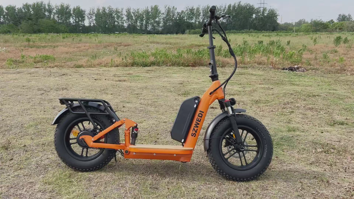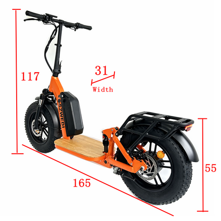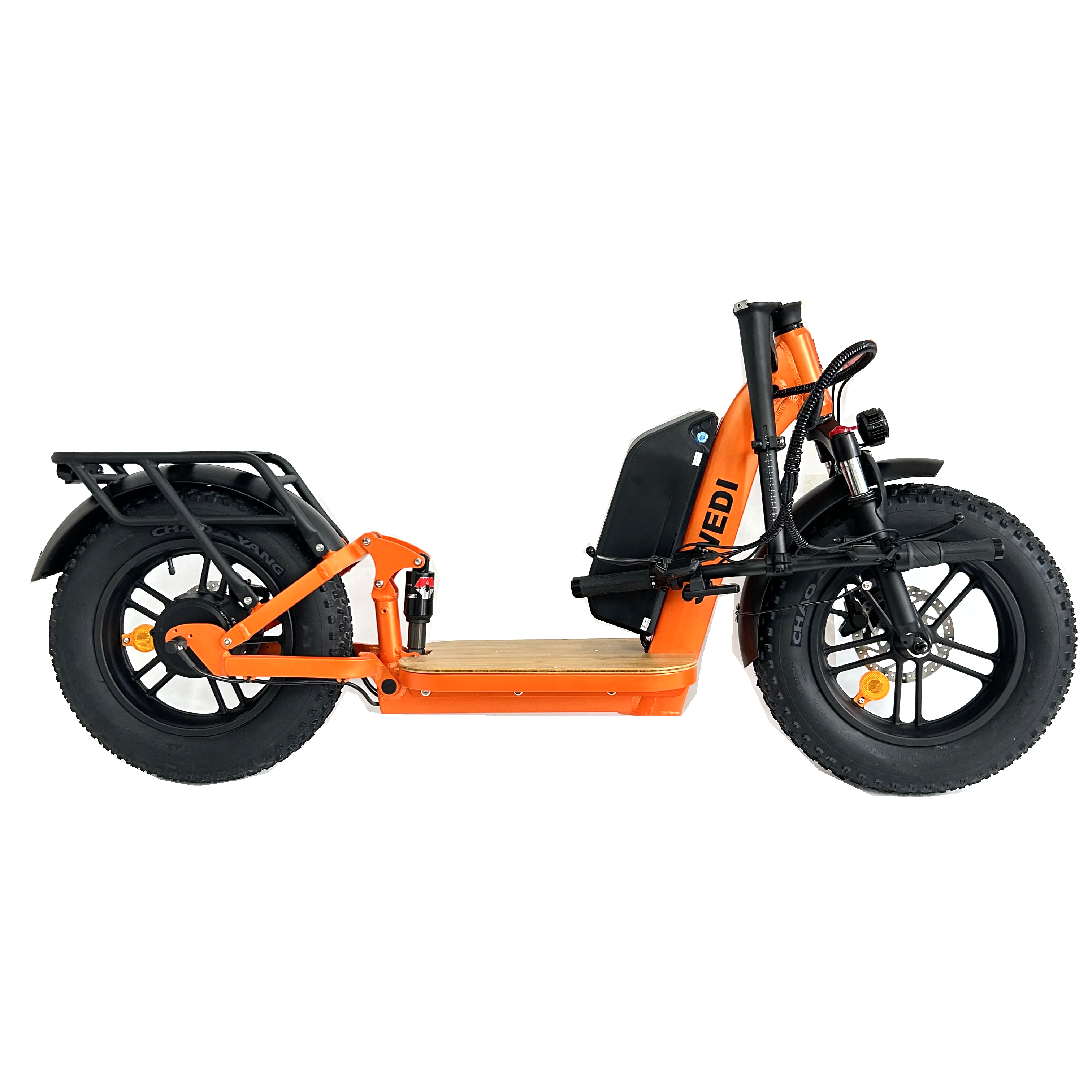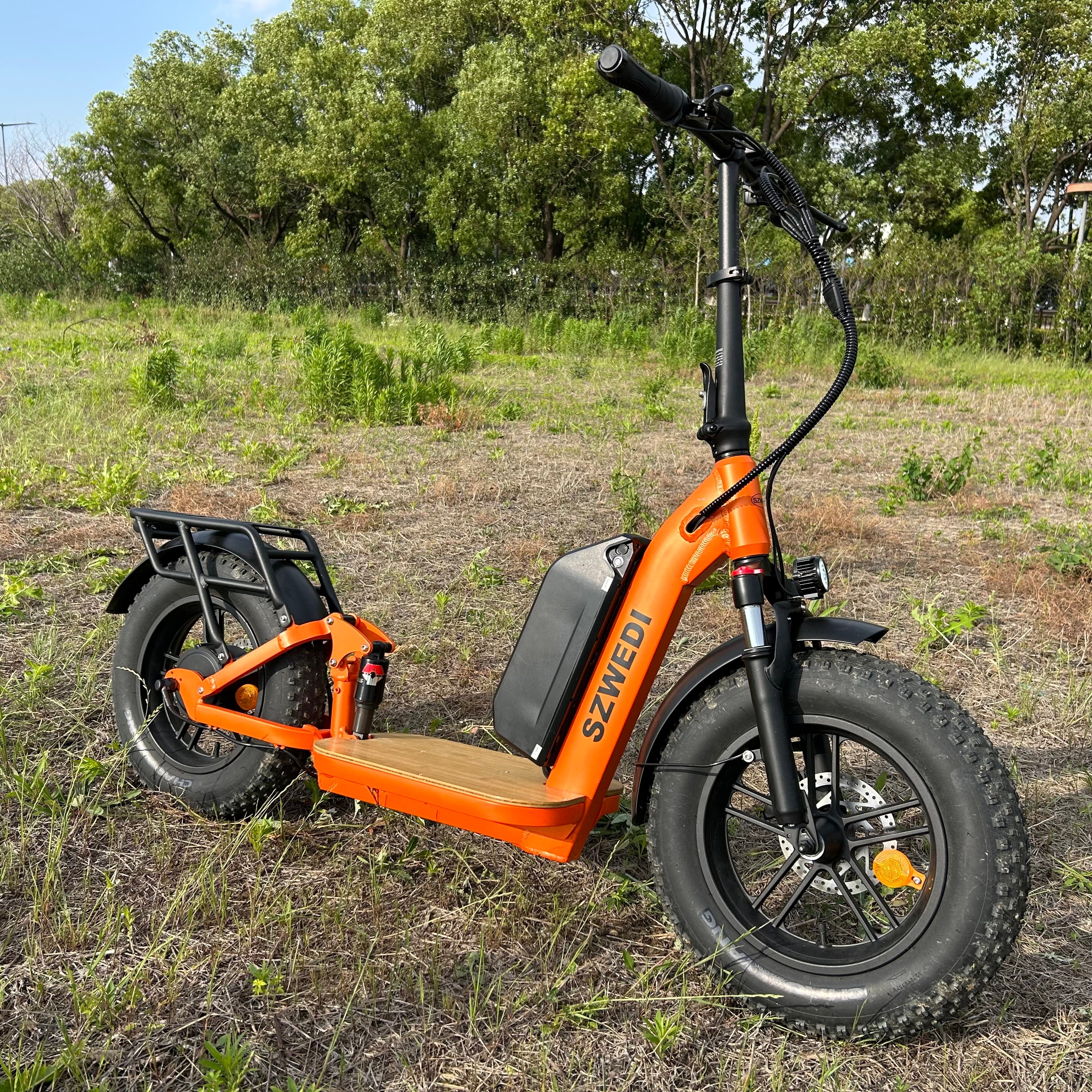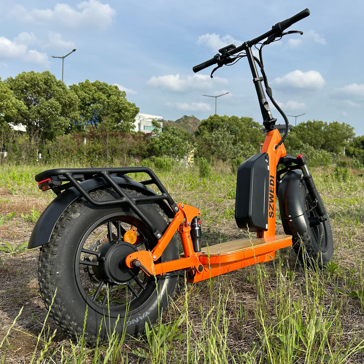 Electric Scooter 16x4.0 inch Fat Wheel with Pneumatic Tire 48V750W Rear Drive Wheel Motor 25mph with Full Suspension Shock Absorber Orange