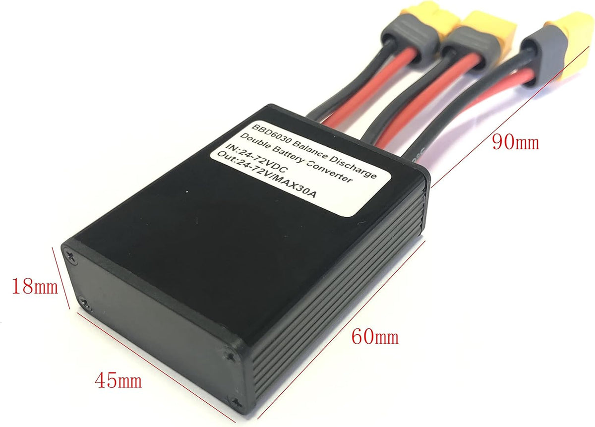Double Battery Discharge Converter for E-Bike 20A/30A/40A Dual Battery Pack Switch Balancer 24-72VDC (Max Current 30A;)